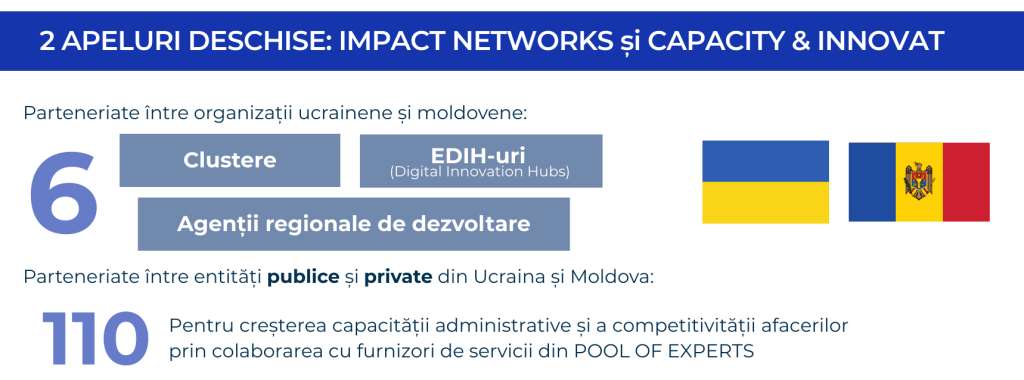 Proiectul EUroBRIDGE_UA_MD își propune să îmbunătățească cooperarea dintre Ucraina și Moldova în drumul lor către aderarea la Uniunea Europeană. În cadrul proiectului vor fi sprijinite organizațiile publice și private prin activități de dezvoltare a capacității instituționale, schimb de cunoștințe și suport financiar direct, prin două apeluri de finanțare deschise.
